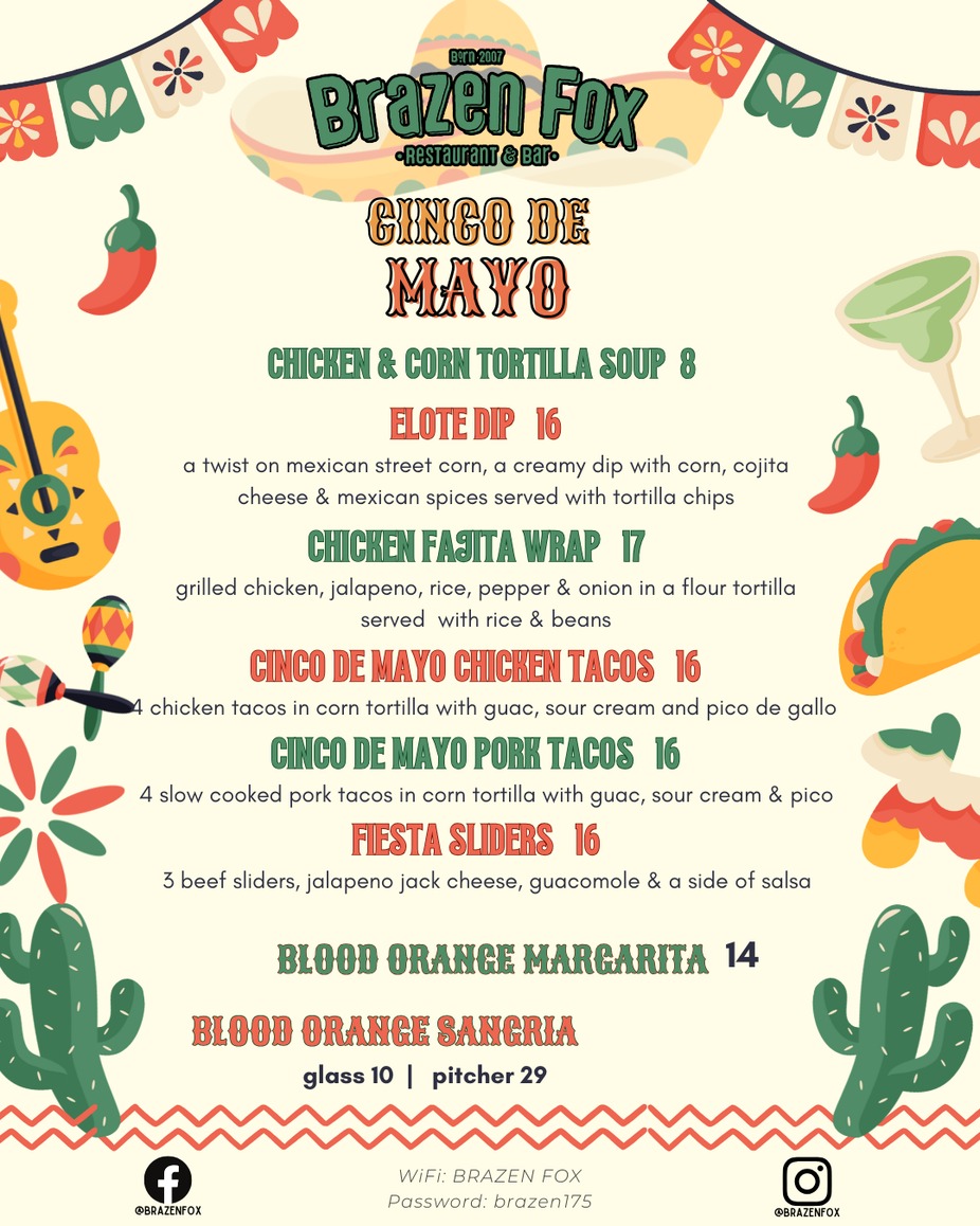 Let the good times roll at Brazen Fox as we celebrate Fat Tuesday and bring the bold flavors of New Orleans. Join us for Mardi Gras-inspired food and drink specials all week long, crafted to spice up your celebration.Our kitchen is serving up classic favorites like hearty jambalaya and rich, soulful gumbo, along with select appetizers and sandwiches featuring our house-made Cajun remoulade-a creamy, flavorful sauce with just the right kick that takes every bite to the next level.Behind the bar, we’re keeping the party going with festive cocktails including Blood Orange Margaritas, Blood Orange Sangria, and classic Hurricane cocktails, alongside our full bar and signature draft beer selection.Whether you’re stopping in for Fat Tuesday or celebrating all week, Brazen Fox is your spot for great food, great drinks, and Mardi Gras vibes done right.✨ Laissez les bons temps rouler at Brazen Fox! ✨